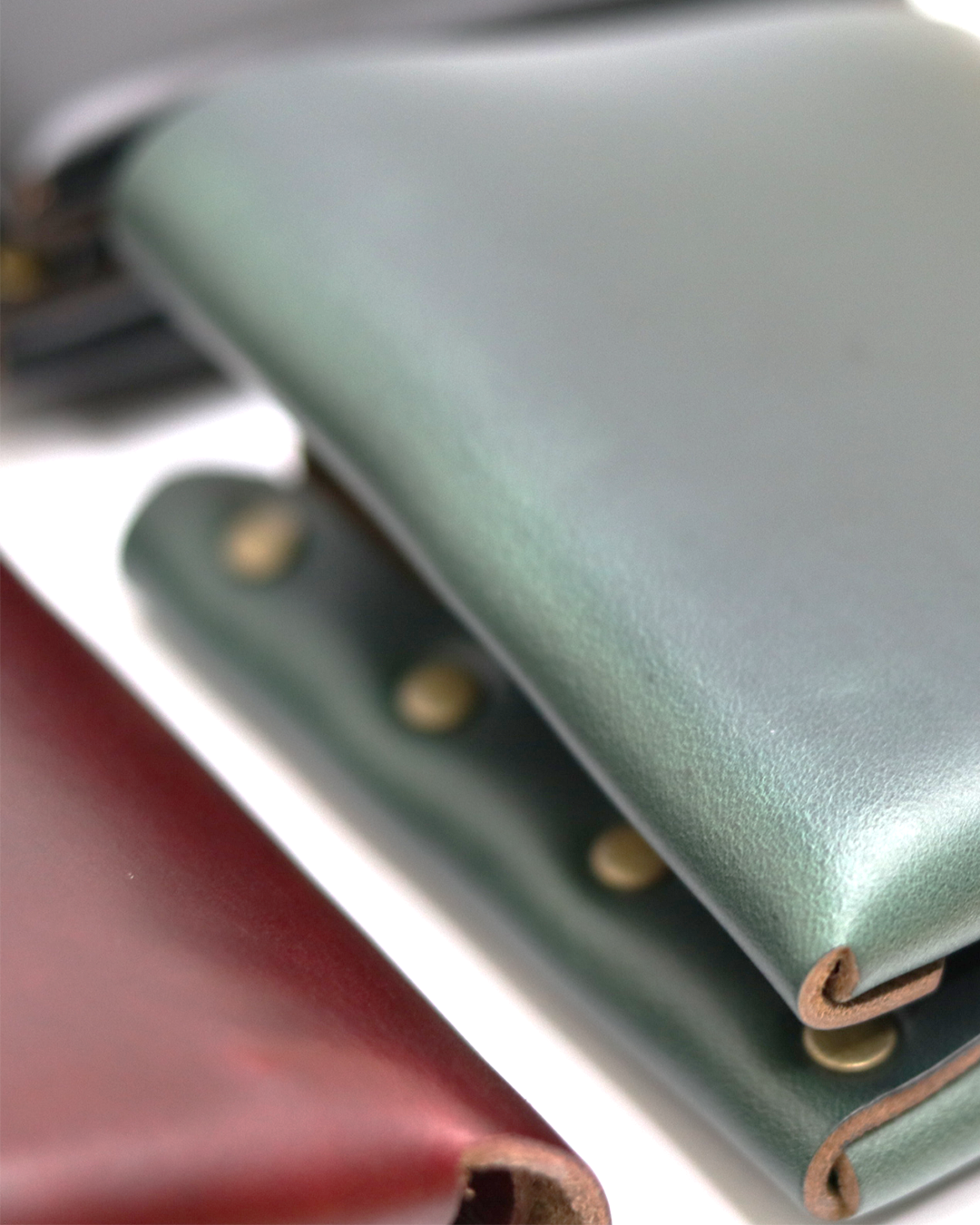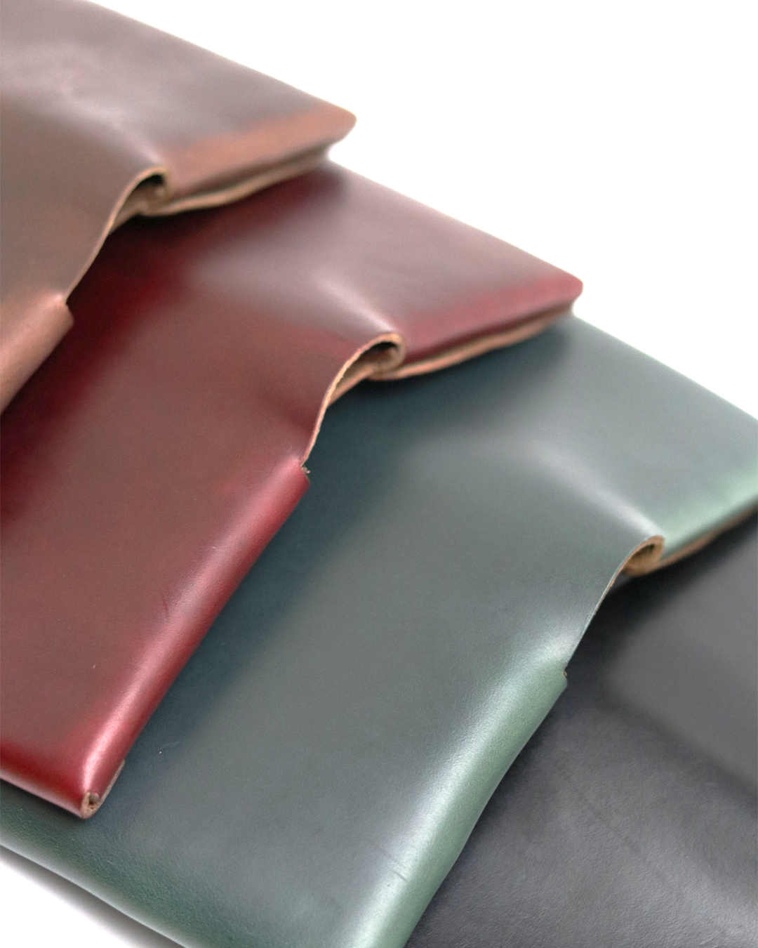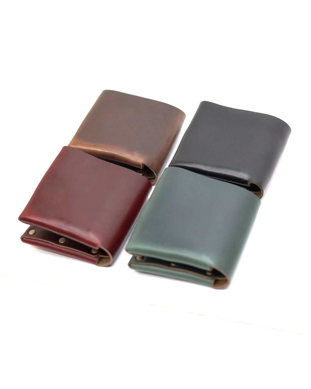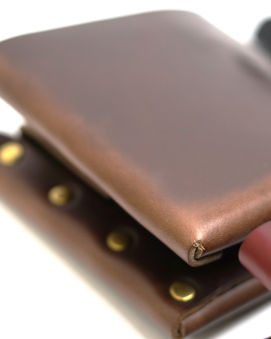 革には上質なクロムエクセルを使用しており、折紙の様に、不切の一枚革で仕上げております。